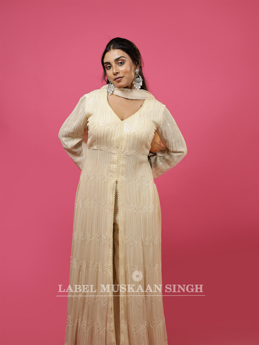 Beige Front Slit Gown