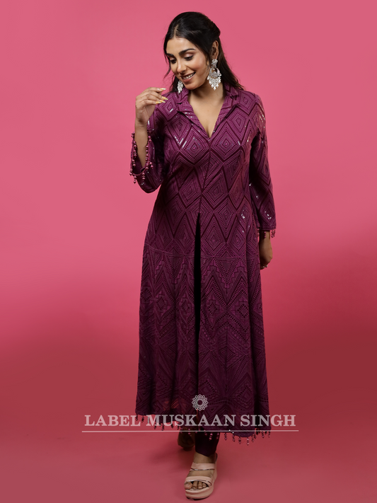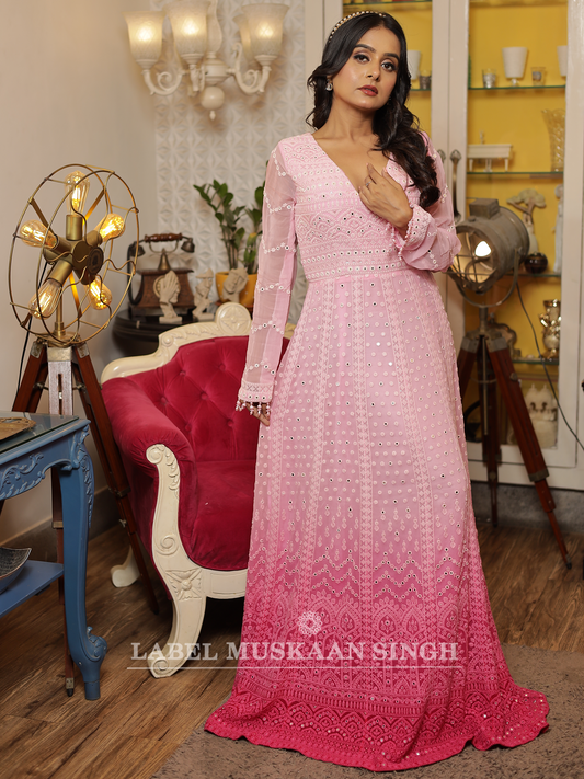Pink Chikankari Front Slit Gown